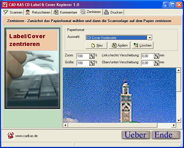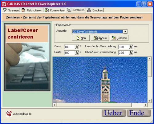 Wenn Sie Sicherheitskopien Ihrer CDs und DVDs anlegen, dann möchten Sie sicher auch, dass die Optik der Kopie dem Original möglichst nahe kommt. Das Programm kopiert das Label und Cover der Original CD/DVD. Sie scannen die Original-Label und Cover ein und können dann noch das Motiv nachbearbeiten und Text hinzufügen usw. Dann nur noch das Papierformat festlegen, zentrieren und ausdrucken.