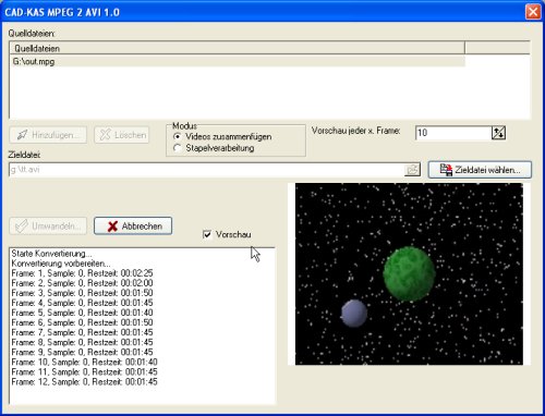 Konvertieren Sie Ihre MPEG Videos (VOB Dateien von DVDs) in AVI Dateien! Sie wählen einfach die MPEG Videos zum Konvertieren und die Zieldatei aus. Das Programm konvertiert dann alle Videos nacheinander oder fügt alle Videos zu einem großen Video zusammen.