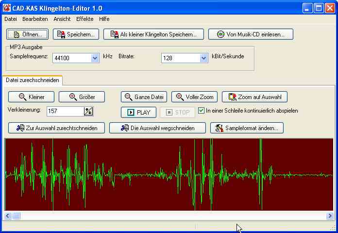 Eigene Realtone Klingeltöne fürs Handy erstellen ist ganz einfach. Mit dem Klingelton-Editor könne Sie Audio-CDs einlesen oder bestehende MP3 oder WAV Dateien von der Festplatte laden. Sie können nun unwichtige Teile herausschneiden, die Lautstärke und Geschwindigkeit optimieren und Effekte wie Echo anwenden. Sie können auch das Ende und den Anfang des Stücks ineinander übergleiten lassen, damit der Klingelton ohne unschöne Unterbrechung immer wiederholt werden kann. Am Ende speichern Sie den Klingelton einfach als extrem kleine MP3 Datei (ca 60 KB pro Minute) oder als WAV Datei ab. Dann senden Sie die Datei aufs Realtone Handy. Das Programm kann natürlich auch einfach nur als Komplettlösung fürs CD-Rippen, zur WAV/MP3 Umwandlung und zur Sound-Bearbeitung benutzt werden.