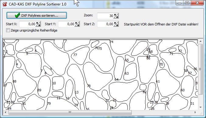 Umsortiert werden momentan: POLYLINE, LWPOLYLINE, LINE, ARC, CIRLE